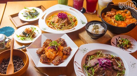 德國風味豬腳/鮮蝦海鮮/田園時蔬/奶油松露/煙燻鴨胸/蕃茄燉牛肉/泡菜梅花豬/泡菜牛五花(以上可選義大利麵/燉飯/咖哩系列)/香煎巴沙魚排/青醬堅果燉五穀